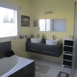 NARBONNE - quartier recherché proxilité sortie autoroute Narbonne Sud- magnifique VILLA - surface : 210m² + combles sur terrain de 520m² arboré avec piscine (9mx4) -séjour/salon de 70m² donnant sur piscine et jardin avec grandes baies vitrées - 3 chambres dont 1 grande chambre parentale et dressing - villa équipée en climatisation réversible - pool house - terrasse - barbecue - patio - grand garage - très belles prestations